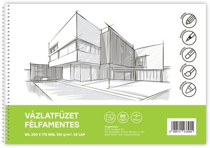 BLUERING Vázlatfüzet FÉLFAMENTES B/5 32 lap 120gr. Bluering (60425) - tonerpiac