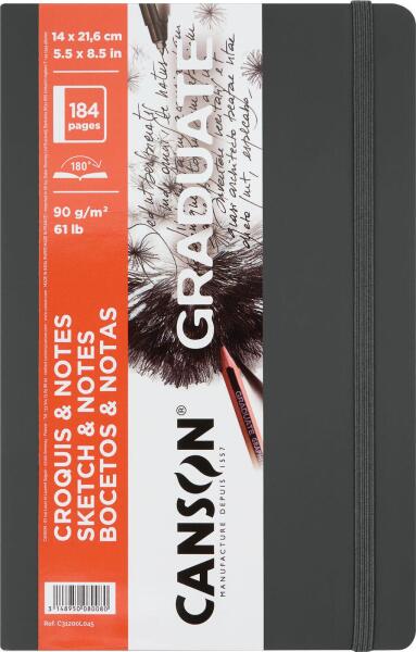Canson Book Hardbound Graduate Sketch & Notes Vázlatfüzet 92 21, 6 x 14 cm 90 g Dark Grey (C31200L045)