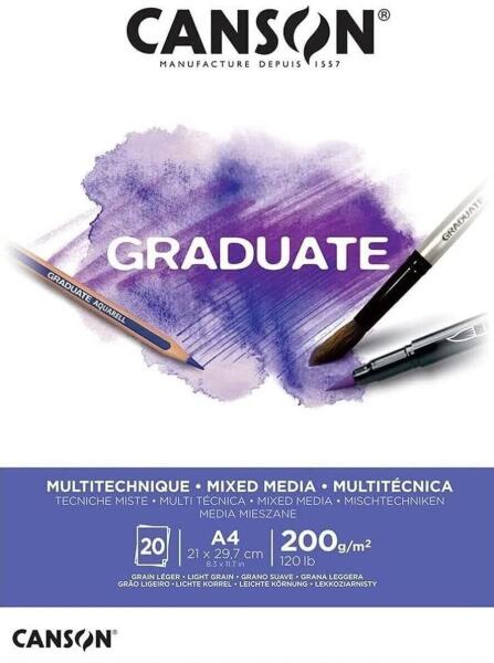 Canson Pad Graduate Mixed Media Vázlatfüzet 20 A4 200 g White (C400110377)