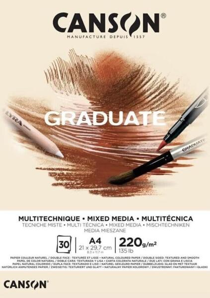 Canson Pad Graduate Mixed Media Vázlatfüzet 30 A4 220 g Natural (C400110368)