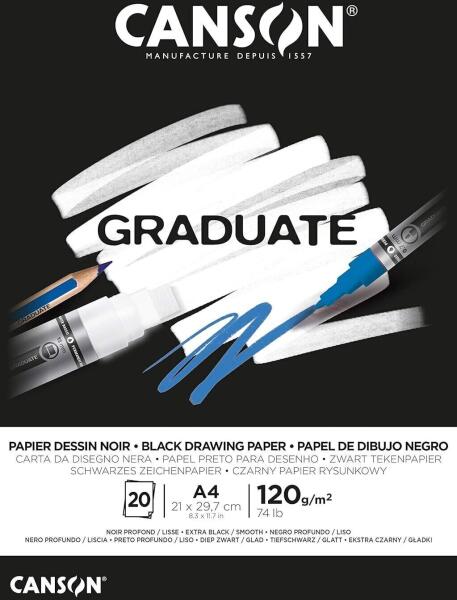 Canson Pad Graduate Papier Dessin Noir Vázlatfüzet 20 A4 120 g Noir (C400110386)