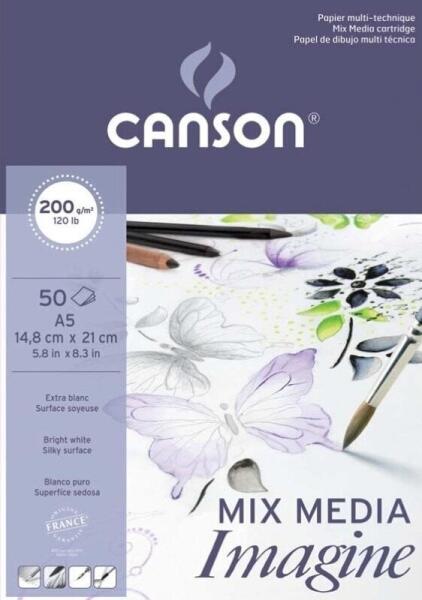 Canson Pad Imagine Vázlatfüzet 50 A5 200 g White (C200006009)