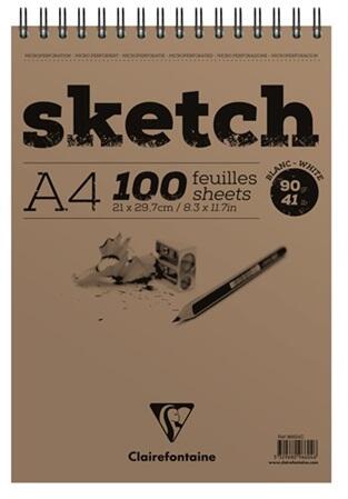 Clairefontaine Művészeti rajztömb A/4 100 lap Clairefontaine Sketch, spirálozott fehér vázlatokhoz 90g (96604C)