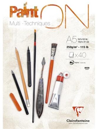 Clairefontaine Művészeti rajztömb A/5 40 lap Clairefontaine PaintON, ragasztott fehér enyhén szemcsés 250g (96538C)