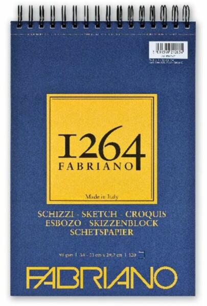 A Fabriano 1264 vázlatpapír finomszemcsés felületű, halvány elefántcsontszínű. Tapintásra vastagabb érzetű, mint a valós grammsúlya.