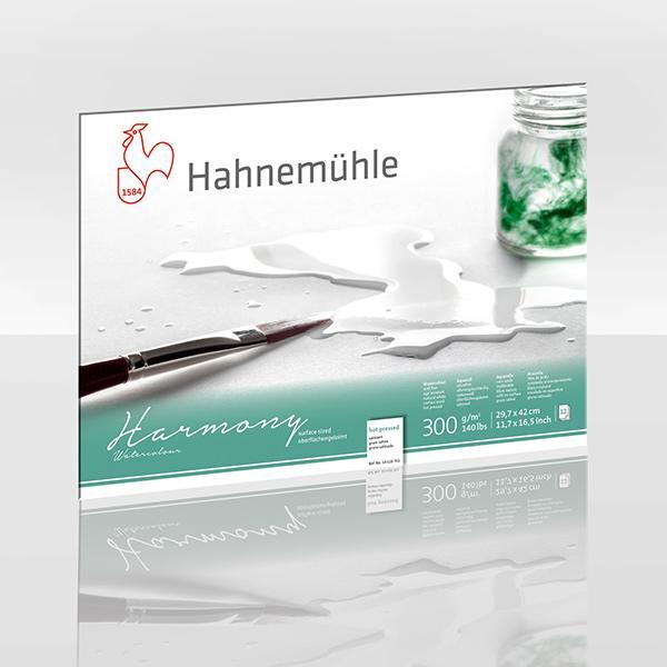 A Hahnemühle Harmony akvarellpapír  egy természetes fehér, 300 g/m2 súlyú akvarellpapír, amely ideális minden vizes festési technikához. Felülete sima (hot pressed), ami különösen alkalmas a részletgazdag munkákhoz. A színek kiválóan kiemelkednek a papíron, és lenyűgöznek természetes ragyogásukkal, így minden témának egyedi megjelenést adnak. A maszkoló folyadékok és szalagok maradék nélkül eltávolíthatók a papírról, még hosszabb idő elteltével is. A nedves színek könnyen korrigálhatók, a hibák eltávolíthatók. A felületi méretezésnek köszönhetően a papír ellenáll a radírozásnak és dörzsölésnek. Sav- és ligninmentes, fényálló és rendkívül hosszú élettartamú papír. 12 lap/tömb