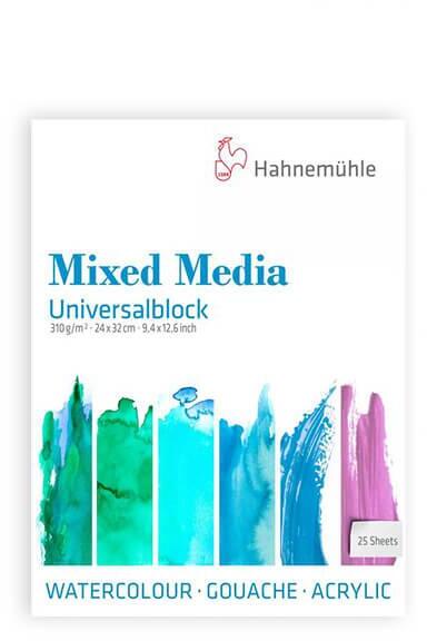 Hahnemühle Mixed Media univerzális festőtömb  alkalmas különféle festési technikákhoz. A finoman szemcsés felületű 310 g-os papír ideális akvarell, akril és gouashe festéshez. . A papír lignin-, és savmentes, ellenáll az időnek. Papír vastagsága:  310 g/m2