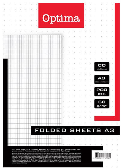 Rovatolt ív OPTIMA Méret: A/3 Típus: franciakockás Papírsúly: 60gr Kiszerelés: 200 ív/csomag