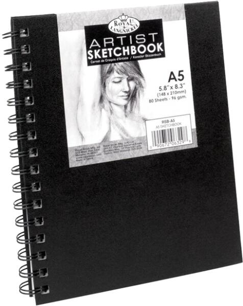 A Royal & Langnickel Artist Sketch book je 80 lapos vázlatkönyv (96 g/m2 grammsúllyal), keménytáblás, fekete borítóval.