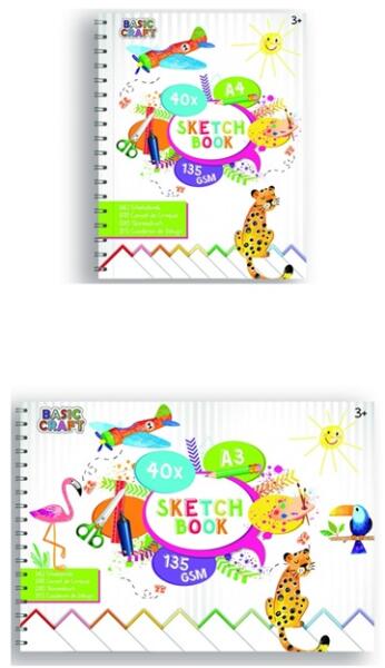 A vázlatkönyv spirálkötésben 40 fehér átlátszatlan papírlapot tartalmaz. Praktikus segítő minden olyan kis művész számára, amely szeret rajzolni bárhol és bármikor. A vázlatkönyvben lévő papír ultra sima és kemény, ezért a festék nem szivárog át rajta olyan könnyen. A spirálkötésnek köszönhetően a lapokkal egyszerűen lehet manipulálni. A rajztömb papírlapjait egyszerűen ki lehet tépni. Ezzel a rajztömbbel elszórakoztathatja a gyermekeit bárhol, ahol csak lehet. TERMÉK PARAMÉTEREI:Vázlatkönyv spirálkötésben, 40 lapos2 nygságban kapható (A4 vagy A3)A lapokat egyszerűen ki lehet tépniPapír súlya 135 g/m2 Nem alkalmas 3 éves korig